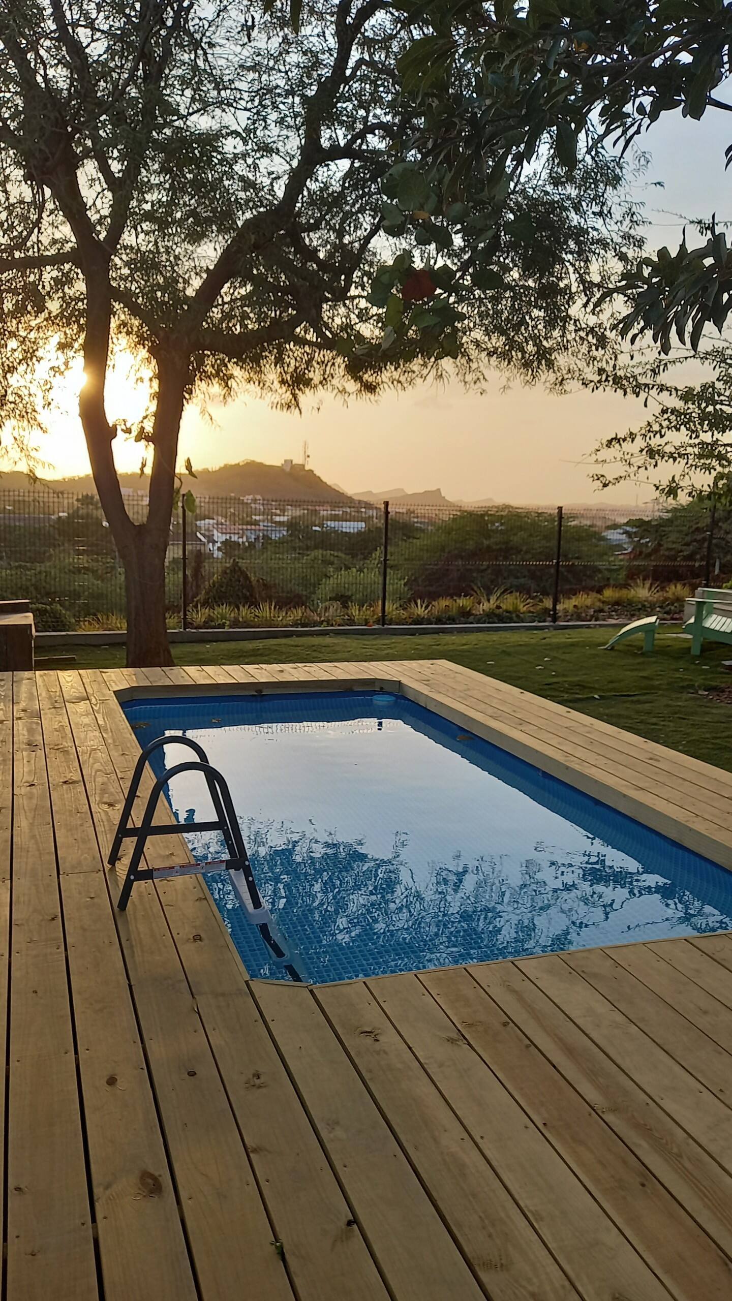 Opened in May '23! Casa Rumba is a tropical styled large house with 3 bedrooms, a large living porch and a bar/fun room. The big porch forms the center of the living space and has a great view over Willemstad. There is a plunge pool and outdoor shower in the garden. The house is modern and arty in decoration and has a big living space, 2 bathrooms and a large kitchen.