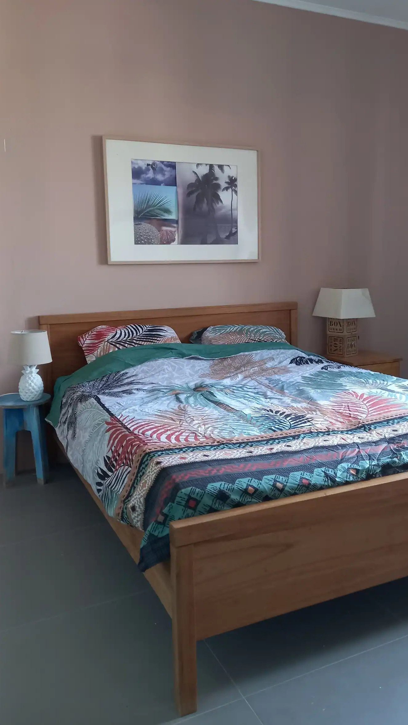 The 3 air-conditioned bedrooms differ in sizes and all have double beds with good matresses. One of the double beds can be turned into 2 single beds. The 2 bathrooms are modern, specious and have warm water. The large porch connected to the garden forms the center of the house and is a lively place overseeing the lights in the garden overlooking Willemstad town. Furthermore there is a separate apartment on the premises that functions as a small fun house. There's a bar and pool table. The pool table can be converted into a ping pong table.